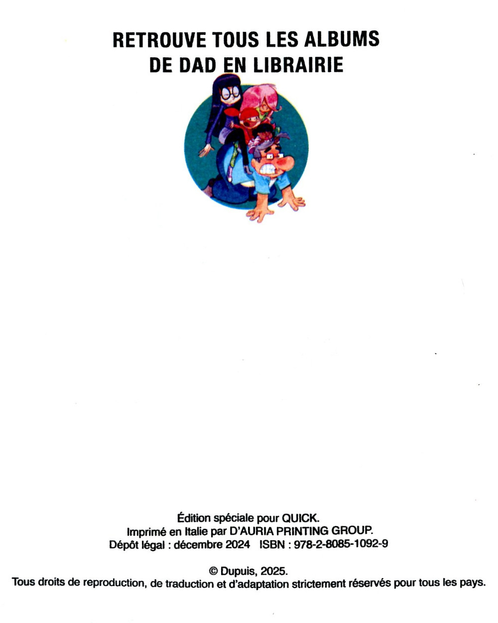 - Info édition : Noté page 2 : Édition spéciale pour Quick. © Dupuis 2025