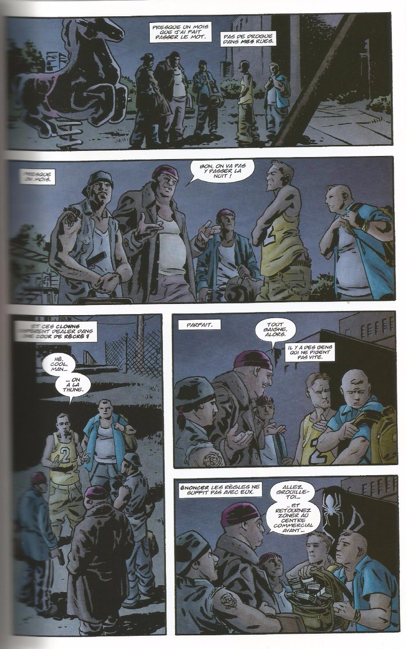 Ce troisième Deluxe s’ouvre par la rencontre entre Daredevil et Carlos LaMuerto alias la Tarentule noire (Daredevil: Blood of the Tarantula #1). Un épisode banal mais malgré tout inclus ici car scénarisé par Ed Brubaker, et de surcroît mal positionné car on ne retrouvera ce héros de seconde zone que dans la deuxième moitié du livre. Bien que Matt Murdock soit avocat et que ses aventures regorgent d’artifices juridiques, il n’avait pas encore été dépeint sous son jour professionnel par Ed Brubaker. La première histoire vient donc corriger cela en invitant Daredevil à défendre un condamné à mort (Daredevil 1998, #107-110). Mais, plus que cette histoire de mafia/FBI un peu grossière, c’est la mise en avant de Dakota North, la détective du cabinet de Murdock qui est à souligner. La seconde histoire voit apparaître un adversaire inédit pour Daredevil en la personne de Lady Bullseye (#111-115) mais se résume à une mêlée de super-héros (Iron Fist, la Tarentule noire, le Tigre blanc, la Main et ses innombrables ninjas). Ainsi, encore une fois, c’est la sous-intrigue avec Dakota North qui rend la lecture intéressante. Si la partie graphique, toujours majoritairement assurée par Michael Lark aidé d’un très bon Clay Mann, est excellente, le scénario baisse lentement en qualité ; Daredevil n’est jamais aussi bon que lorsqu’il est Matt Murdock et les pirouettes costumées tendent désormais à prendre le dessus.BDGest 2014 - Tous droits réservés