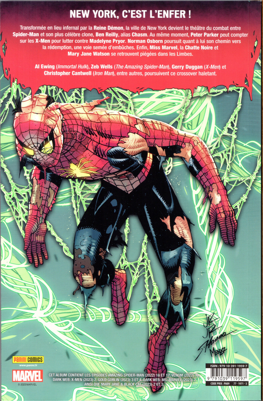 Résumé: Plongée dans l’enfer par la Reine Démon, New York devient le théâtre du combat entre Spider-Man et son clone, Ben Reilly, alias Chasm. Norman Osborn poursuit quant à lui son chemin vers la rédemption et Miss Marvel, la Chatte Noire et Mary Jane Watson sont piégées dans les Limbes.