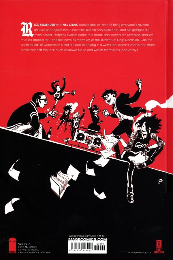 Résumé: RICK REMENDER and WES CRAIG reunite one last time to bring everyone’s favorite assassin undergrads into a new era, but old habits die hard, and old grudges die even harder. Festering rivalries come to a head, dark secrets are revealed, and sins must be atoned for—and few have as many sins as the students of Kings Dominion. Can the latchkey kids of Generation X find a place to belong in a world that doesn’t understand them, or will they drift too far into an unknown future and watch themselves fade away?
