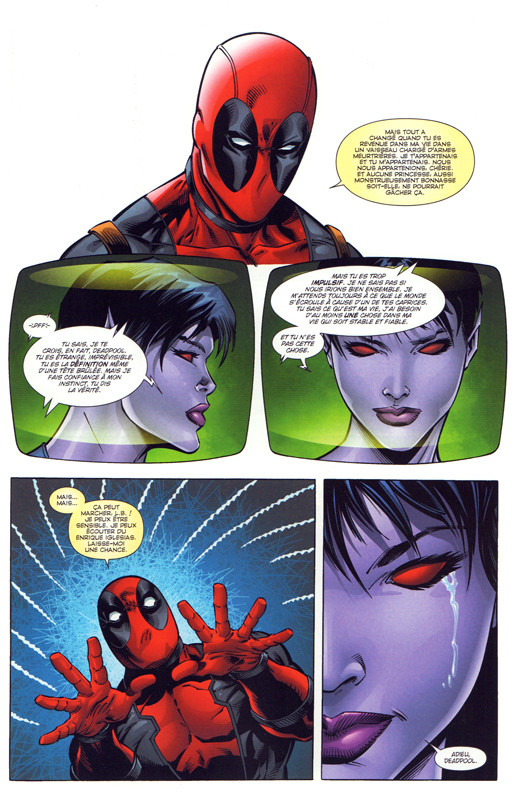 Résumé: La Deadpool Corps est une équipe de Deadpool d'univers alternatif. La Corps a été fondé par le Deadpool de la Terre-616 après avoir été choisi par le contemplateur dans le but d’arrêter une entité cosmique qui dévore la conscience du multivers.