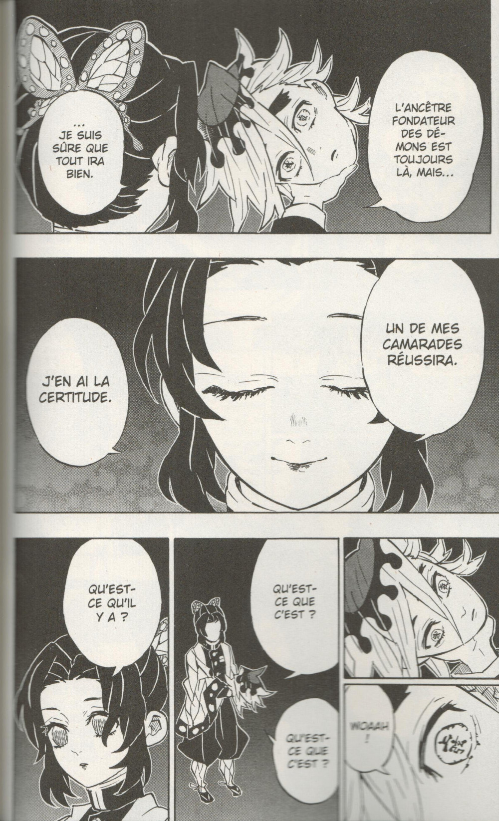 Résumé: Le combat fait rage entre Doma, la 2e lune supérieure et les pourfendeurs Kanao et Inosuke. Les deux jeunes guerriers, tremblant de colère, parviendront-ils à venger tous ceux que Doma a dévorés ? Non loin de là dans la Forteresse Infinie, Mitsuri Kanroji, le pilier de l'Amour, et Obanai Iguro, le pilier du Serpent, font face à la nouvelle 4ème lune supérieure, tandis que Muichiro Tokito, le pilier de la brume, se retrouve face à la 1ère lune supérieure, qui lui fait une étrange révélation sur sa famille...