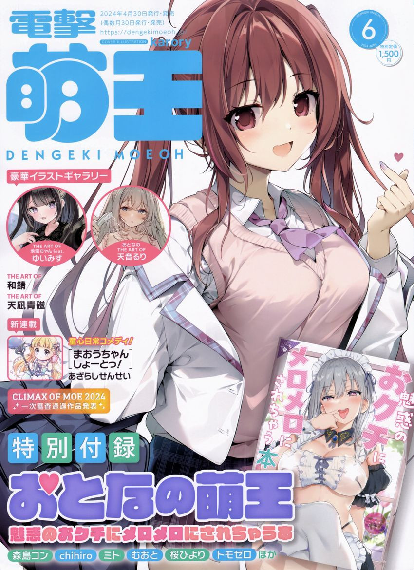 Magazine/artbook érotique bimestriel en couleur publié au Japon. Avec 2 posters et un artbook en couleur de 32 pages : "Otona no Moeoh - Miwako no Okuchi ni Meromero ni Sarechau Hon".