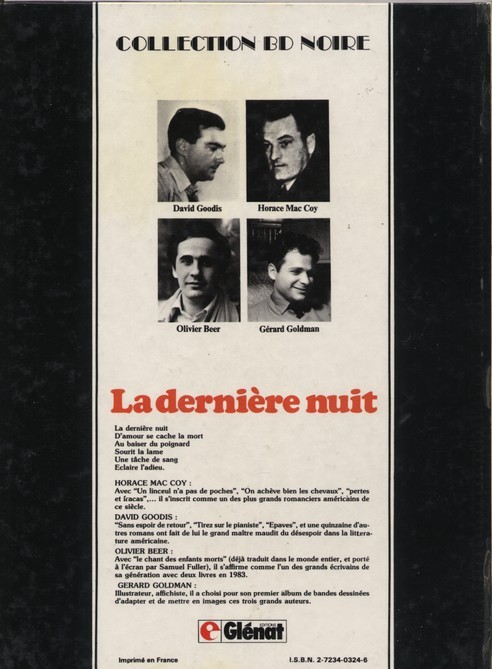 Adaptations de Conscience professionnelle (David Goodis), Le Tueur de tueurs (Horace McCoy) et La Dernière Nuit (Olivier Beer).
