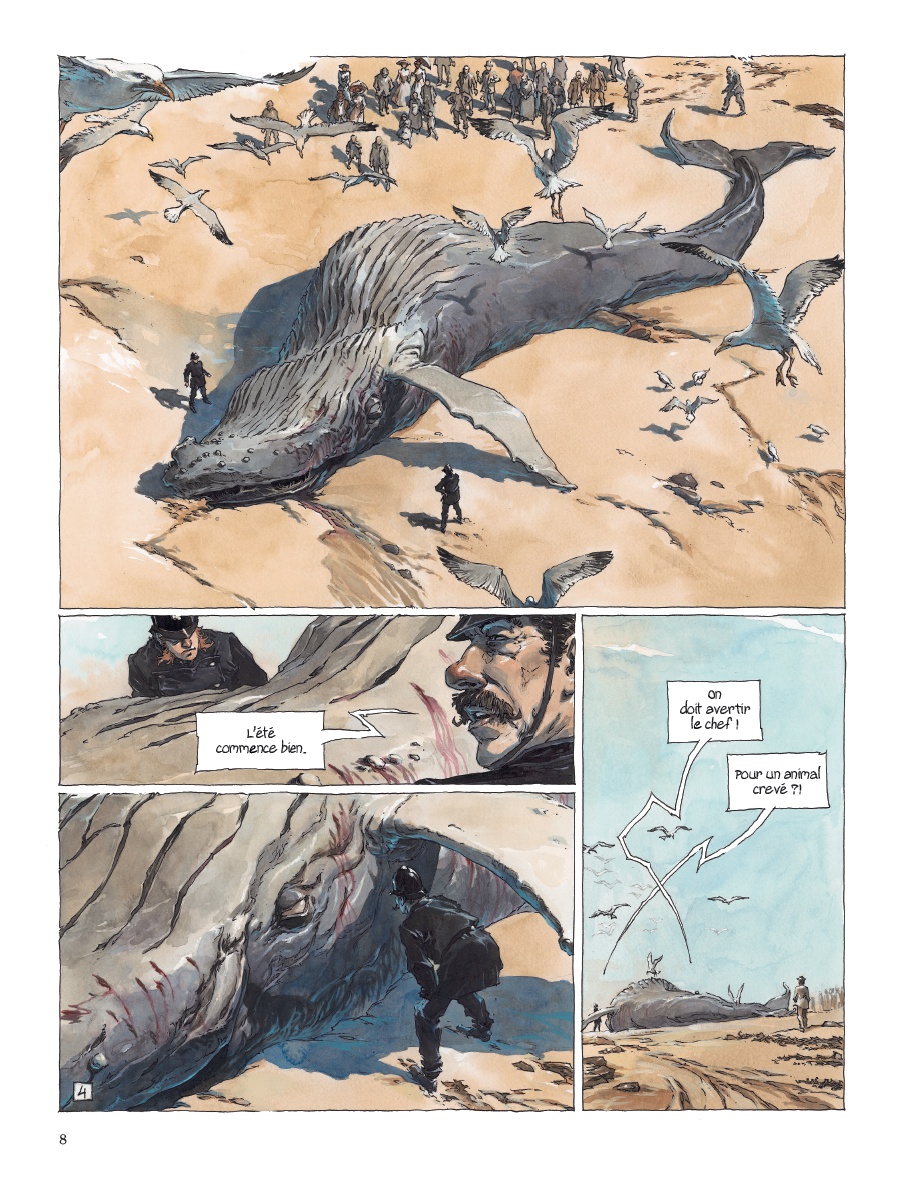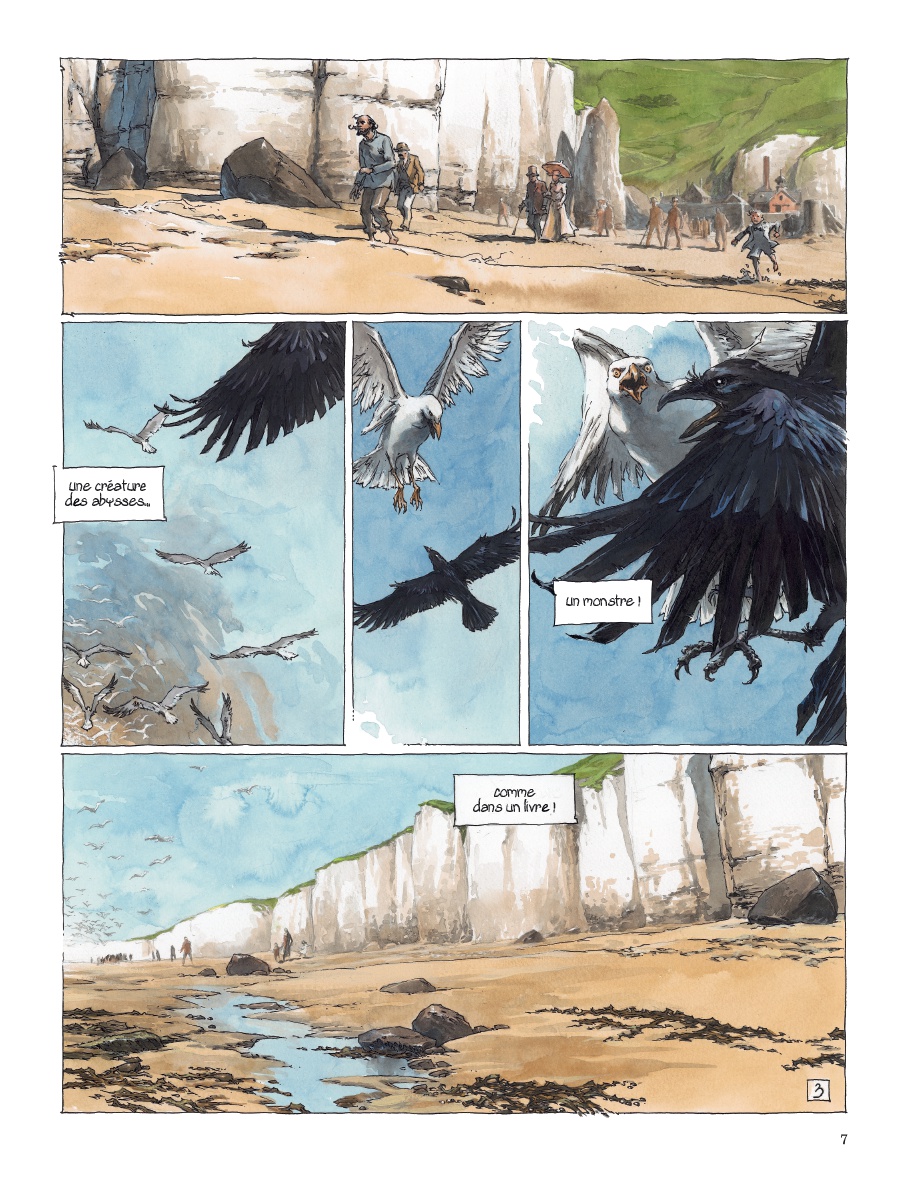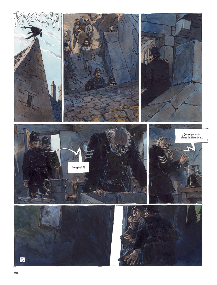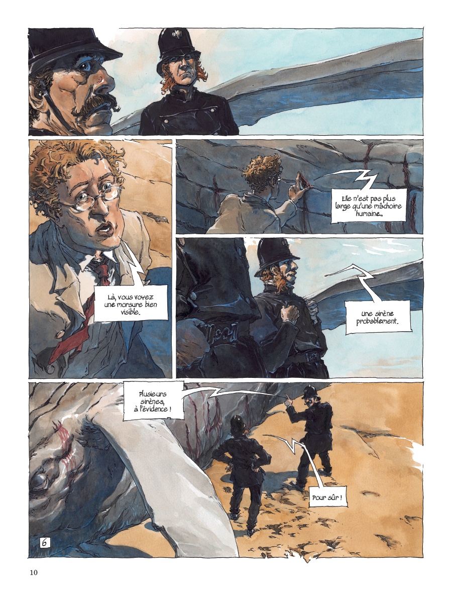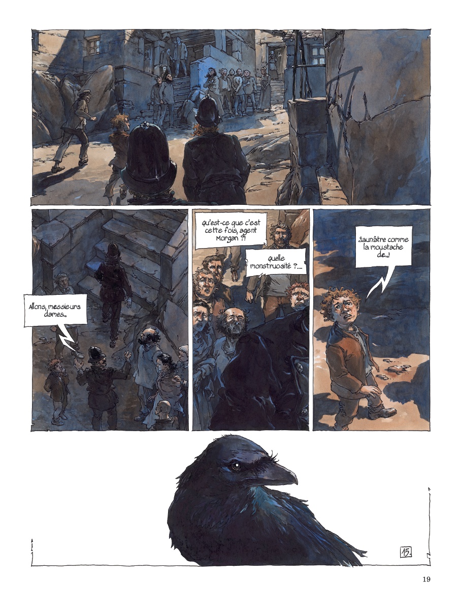 Résumé: Le long de la côte galloise, un village est la proie d'une série de crimes inexplicables. Le personnage central – amateur de littérature fantastique – fait progressivement la connaissance d'une étrange jeune fille alternant douceur et furie. Le finale se déroule dans une demeure envoûtante pourtant supposée avoir été ravagée par le feu. La jeune fille se vengerait-elle des villageois qui ont refusé de porter secours à ses parents ? Une captivante réflexion sur les techniques que la BD offre pour transmettre le sentiment de « peur » et les mises en scène possibles de cette dernière. Sorel rend hommage à Arthur Machen, un de ses romanciers favoris ; toute la campagne, les forêts qui entourent ce petit village portuaire maudit s'inspirent des textes de cet auteur gallois. Un projet de plus de vingt ans prend ainsi forme en regroupant toutes sortes de références et de réflexions sur la mise en scène de la peur !