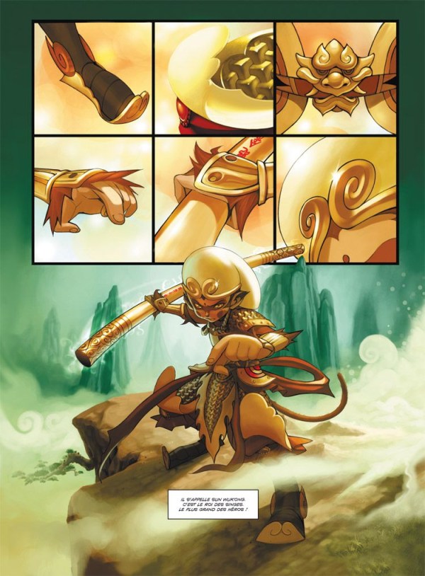 Résumé: Il s'appelle Sun Wukong. C'est le roi des singes. Il vit avec les siens en bordure du petit pays de hérauts. Celui-ci n'est cependant pas tout à fait comme les autres. Il est certes en mesure de marcher, courir, bondir, séparer les bonnes baies des empoisonnées, comme tous les singes... mais de plus, il a la capacité de raisonner ! Découvrez les aventures de ce sémillant roi des singes et comment il devint immortel à l'issue de sa pérégrination mouvementée vers l'Ouest !