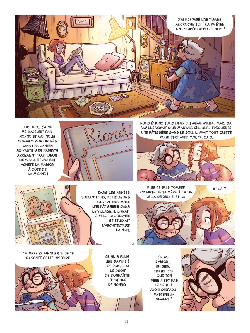 Résumé: La jeune Dina, dont le père a mystérieusement disparu depuis un an, vit seule avec sa mère. Mais pour l'instant, c'est direction vacances, dans le petit village de sa nonna ! Mais voici que Dina se réveille un beau matin rétrécie à une taille de 5 millimètres ! Autour d'elle, les habitants du Millimonde, un village de lilliputiens installé dans le grenier de nonna ! Dina va devoir maintenant affronter chat et insectes devenus géants, luttes de pouvoir au sein du village, mais aussi un bien étrange secret pâtissier...