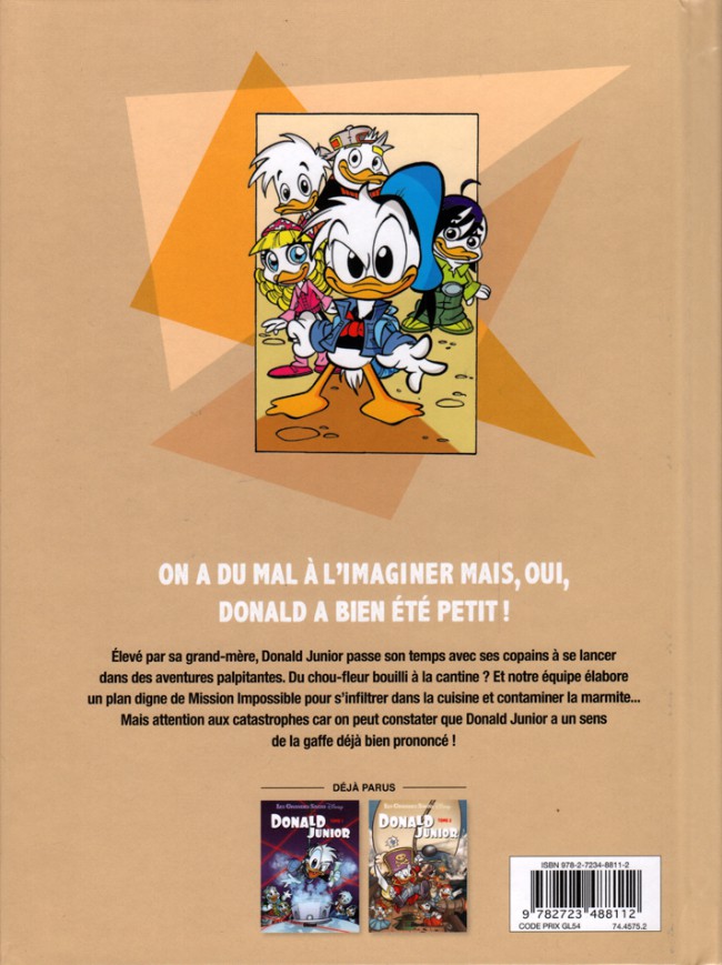 Résumé: Élevé par sa grand-mère, Donald Junior passe son temps avec ses copains à se lancer dans des aventures palpitantes. Du chou-fleur bouilli à la cantine ? Et notre équipe élabore un plan digne de Mission Impossible pour s'infiltrer dans la cuisine et contaminer la marmite... Mais attention aux catastrophes car on peut constater que, petit déjà, Donald a un sens de la gaffe bien prononcé !
