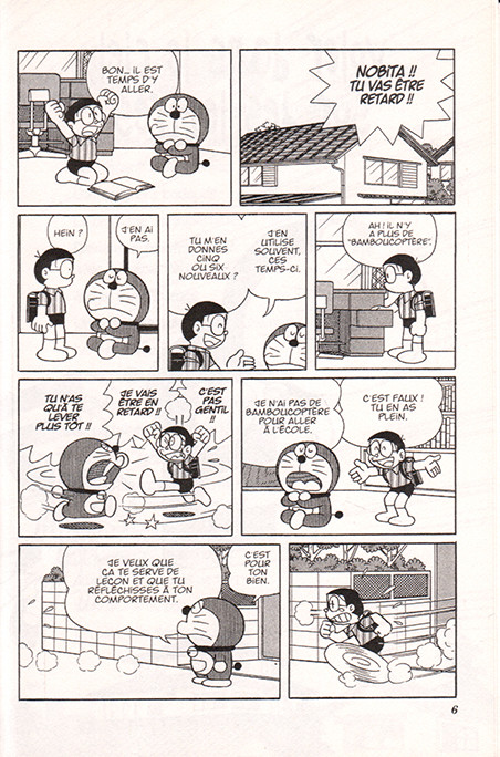 Résumé: Nobita est un jeune garçon assez irresponsable, complètement gaffeur et maladroit. Il est, de plus, régulièrement grondé par sa mère et ses professeurs à cause des mauvais plans qu'il imagine souvent.