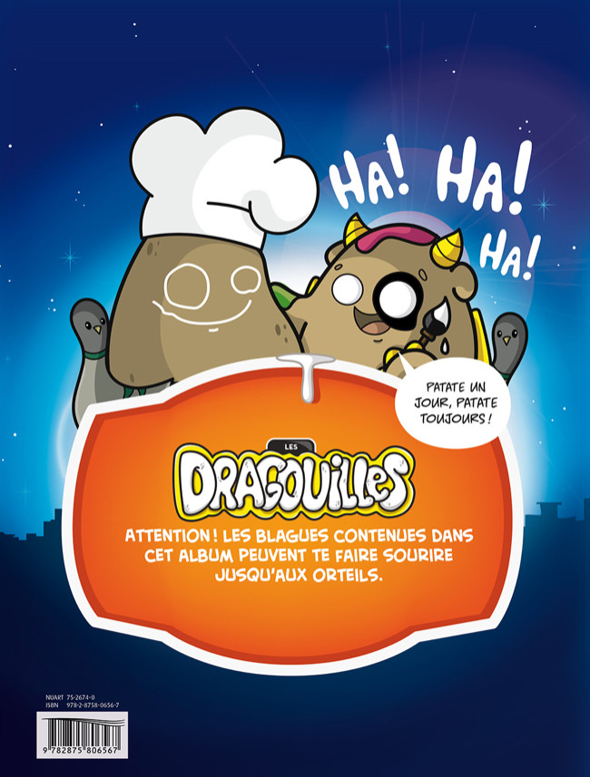 Résumé: Les dragouilles, ces petites bêtes cornues et espiègles au croisement du dragon et de la patate font encore des folies. Les jumeaux, la geek, la branchée, la rebelle, le cuistot et l’artiste proposent cette fois un album tout en BD. Attention! Les blagues contenues dans cet album peuvent te faire sourire jusqu’aux orteils.