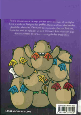 Résumé: Les Dragouilles sont de drôles de petites créatures s'apparentant à des "monsieur Patate" cornus, affublés d'une queue et d'ailes de démons. Chaque titre de la série regroupe de courtes bandes dessinées mettant en scène ces êtres fabuleux auxquelles se greffent des charades, des jeux, des recettes, des idées de bricolage, des blagues, des devinettes et des rubriques informatives sur des sujets variés, qui permettent ici de glaner quelques faits étonnants à propos de différents endroits de la planète.