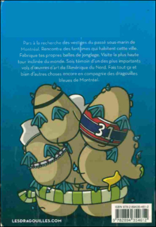 Résumé: Les Dragouilles sont de drôles de petites créatures s'apparentant à des "monsieur Patate" cornus, affublés d'une queue et d'ailes de démons. Chaque titre de la série regroupe de courtes bandes dessinées mettant en scène ces êtres fabuleux auxquelles se greffent des charades, des jeux, des recettes, des idées de bricolage, des blagues, des devinettes et des rubriques informatives sur des sujets variés, qui permettent ici de glaner quelques faits étonnants à propos de Montréal et de ses attraits.