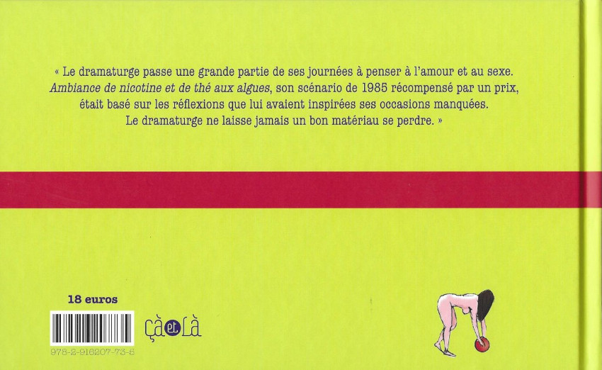 Là encore, cette oeuvre au format à l'italienne ne m'a pas touché. Il y a 3 cases par page en horizontale. La couleur sera de rigueur. La forme est presque linéaire et homogène. On notera l'absence de bulle et une narration omniprésente. La construction se fait dans une parfaite logique. Le dramaturge prend des notes mentales toute la journée qu'il restitue le soir de manière mécanique. Cela va s'étirer sur près de 159 pages. C'est ennuyeux à la longue car nous allons avoir droit à dur "le dramaturge dort toujours sur le dos. Enfant, le dramaturge avait une conscience éveillée". Oui, on peut finir par s'endormir et passer totalement à côté de ce dramaturge solitaire aux journées totalement mornes.BDGest 2014 - Tous droits réservés