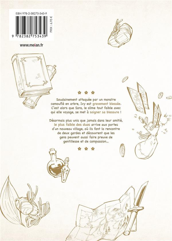 Résumé: De nouvelles rencontres vont changer le périple d'Ivy et Sora... !Soudainement attaquée par un monstre camouflé en arbre, Ivy est gravement blessée. C'est alors que Sora, le slime tout faible avec qui elle voyage, se met à soigner sa blessure !Désormais plus unis que jamais dans leur amitié, le plus faible des duos arrive aux portes d'un nouveau village, où ils font la rencontre de deux gardes et découvrent que les gens peuvent aussi faire preuve de gentillesse et de compassion...