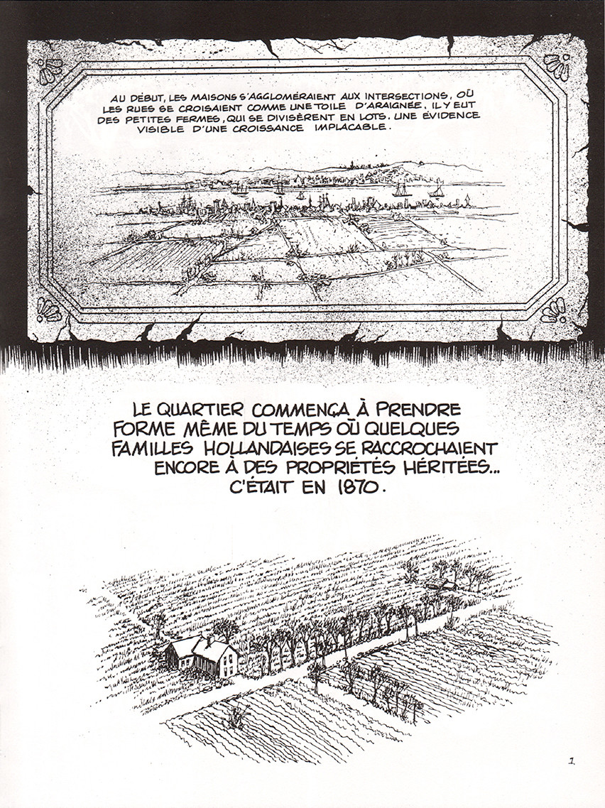"Dropsie Avenue", dernier volume de la trilogie "eisnerienne" sur le Bronx, n'atteint pas tout-à-fait la perfection de certaines autres œuvres du maître comme, au hasard, "un Contrat avec Dieu" ou encore "l'Appel de l'Espace", sans doute parce que son sujet même - narrer la vie d'un quartier sur plus d'un siècle, plutôt que suivre le destin d'un ou de plusieurs individu(s) particuliers (même s'il ne manque pas ici de personnages dont la vie nous est narrée presque du début à la fin, lorsque cette vie se mêle intimement à celle de Dropsie Avenue, comme c'est le cas de l'avocat juif Gold) - empêche une véritable identification du lecteur aux "héros" du livre. C'est néanmoins par la pertinence de sa description de la construction de l'Amérique, couche d'immigrants après couche d'immigrants, que "Dropsie Avenue" gagne le statut de lecture indispensable en 2016, alors que la question de l'intégration et de la cohabitation entre cultures différentes et mœurs conflictuels est certainement l'une des plus essentielles à la survie de nos civilisations. Eisner est tout sauf un moraliste (son propos ici pourrait d'ailleurs être assimilé à celui d'un théoricien de l'urbanisme), et il ne dissimule aucune tare de l'être humain, aucune abjection à laquelle se livrent des personnages souvent corrompus jusqu'à la moelle : chez Eisner, l'homme est mauvais, le bon est impitoyablement écrasé, et tout finira forcément mal, comme l'illustre la dégradation interminable - pourtant évitable, on le voit bien - de ce quartier livré régulièrement à des scènes de haine et de violence inter-confessionnelles ou inter-raciales. Pourtant, point de nihilisme, point de désespoir, mais une sorte d'admiration devant l'énergie et la résilience de l'être humain, aussi haïssable ou au contraire naïf soit-il, qui rend la fin du livre particulièrement émouvante. Oui, "Dropsie Avenue" a été finalement rasée, puis remplacée par une utopie qui fera long feu... mais la société constituée tant bien que mal par ces groupes ethniques "inassimilables" a fini par fonctionner. Et plus important sans doute, des enfants ont grandi, des hommes et des femmes se sont aimées, des familles ont vécu ici. Ce beau livre en témoigne.BDGest 2014 - Tous droits réservés