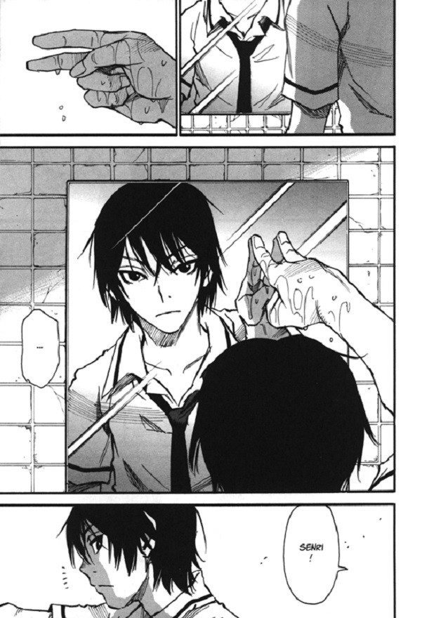 13 ans plus tard, la colère de Senri ne s’est toujours pas apaisée. Et pour cause : Kazuto et lui étaient plus que des frères. Douleur, peur… les émotions de l’un étaient ressenties par l’autre, parfois accompagnées de visions pendant les pics d’angoisse. Senri a donc vécu le calvaire de son jumeau comme si c’était le sien.