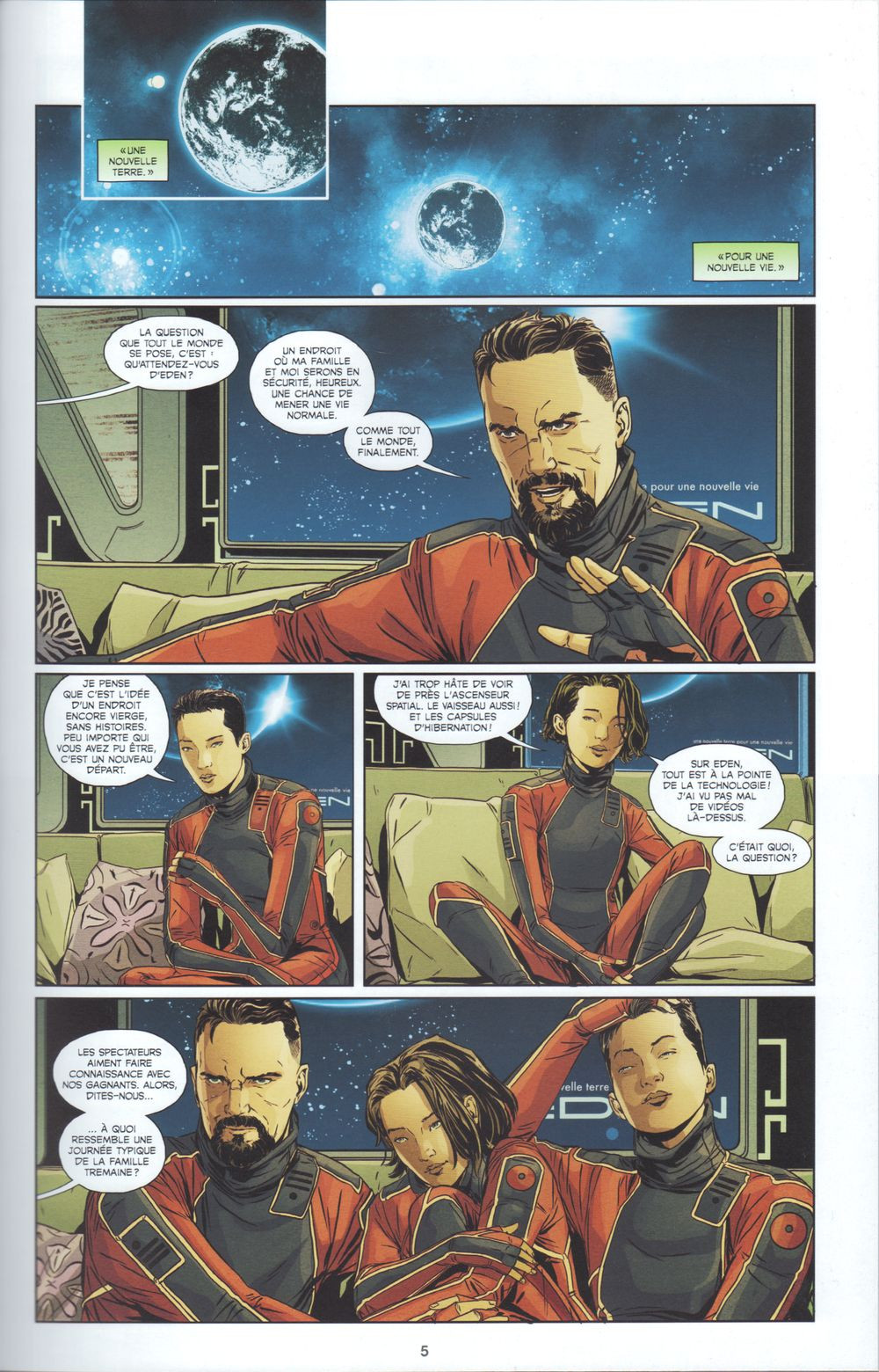 Une nouvelle Terre pour une nouvelle vie ». Ce slogan de la société Eden Corp qui organise des vols vers une nouvelle planète paradisiaque est tellement attirant que Gave Oximenko, sa femme et sa fille, qui survivent dans une terre en sursis, vont tenter le tout pour le tout : prendre la place de leurs voisins qui ont gagné un des si rares billets proposés au tirage au sort. Et tout fonctionne à merveille. Seulement dans le vaisseau le paradis va vite devenir l’enfer… Une histoire au scenario prenant et haletant parfaitement mis en image. Un excellent moment de lecture.Le 01/04/2024 à 00:15:32