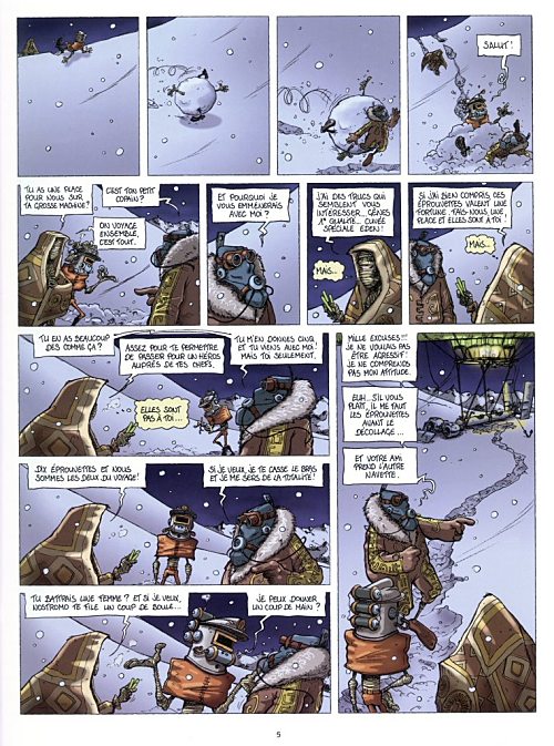 La couverture donne le ton : après l'ambiance industrielle viciée du bunker, l'air pur de la cité Mong, l'Eden céleste au mille montgolfières. Amélioration de la qualité de vie pour Zanoo en apparence seulement car les particularités de cette nouvelle société démontrent toute la faculté de François Maret à imaginer la loufoquerie qui caractérise cette série depuis le premier tome. Si une seule qualité devait être reconnue à l'auteur, c'est bien l'imagination. Le mélange d'inventivité et de dérision confirme le parallèle fait avec Horologiom ou la Nef des Fous, malgré une certaine confusion qui ne manque pas d'assaillir le lecteur lorsque trop de données viennent se télescoper telles que visions de Zanoo et les pensées de Réno (l'homme qui l'habite) par exemple.