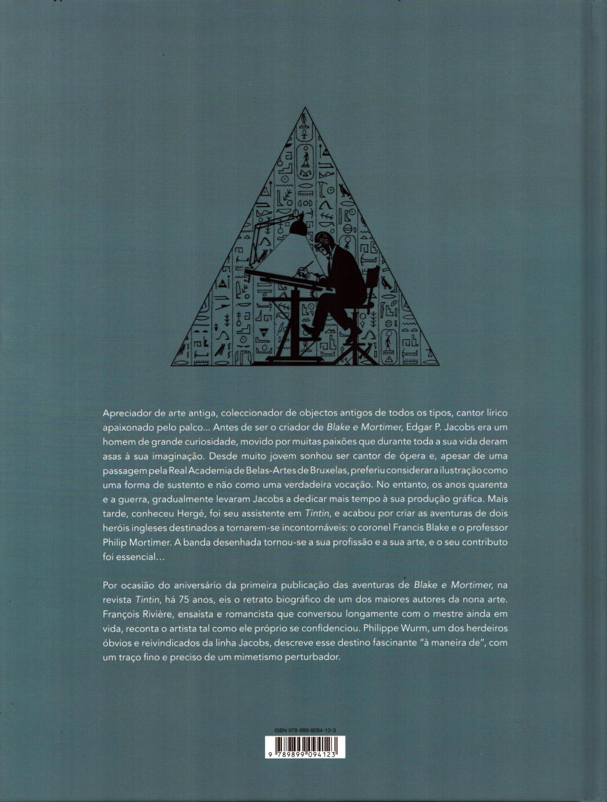 Info édition : DL nº 496179/2022. Edição em português de "Edgar P. Jacobs: Le rêveur d'apocalipses", 2021. Contém um dossiê com um posfácio de François Riviére, notas biográficas das personagens e uma biografia cronológica de Edgar Pierre Jacobs. Nas