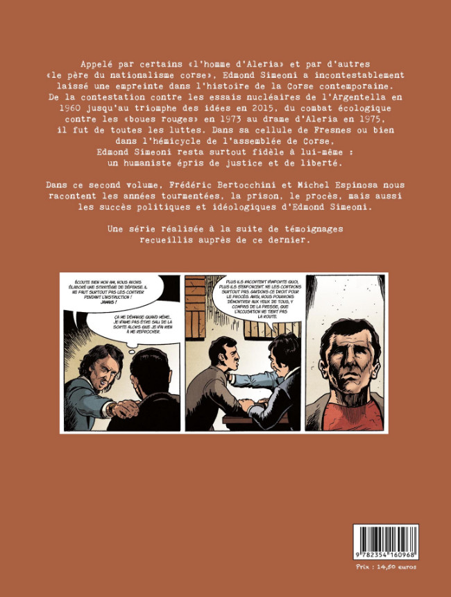 Dans ce second volume, Frédéric Bertocchini et Michel Espinosa nous racontent les années tourmentées, la prison, le procès, mais aussi les succès politiques et idéologiques d'Edmond Simeoni. Une série réalisée à la suite de témoignages recueillis auprès de ce dernier.
