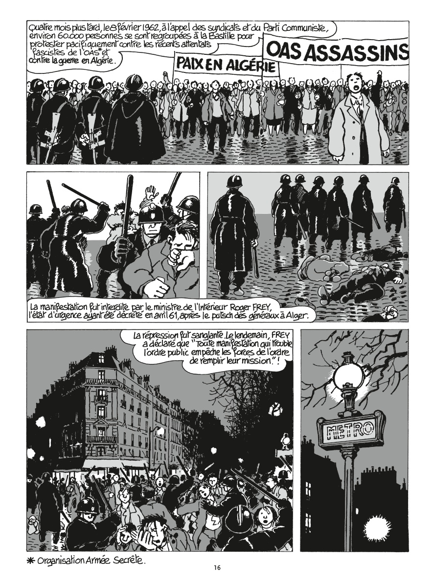 J'ai lu "Elise" il y a quelques temps et cet album a réveillé dans ma mémoire une époque déjà lointaine qui s'est soudain mise à revivre. D'emblée, j'ai été frappé par la modestie de Dominique Grange, qui, bien que le récit soit autobiographique, ne la met en avant qu'accompagnant les soubresauts militants de la période dans lesquels elle se fond : et c'est exactement la bonne distance pour rendre compte de cet ample mouvement de révolte par rapport auquel nous avons du nous positionner. La guerre d'Algérie et ses horreurs furent une matrice majeure du rejet de cette société gaulliste qui avait succédé à la non moins calamiteuse 4ème République, ces évènements déclencheurs sont bien restitués, avec l'apport évocateur des compositions de Tardi (ça "sonne" juste à mes yeux). La répression sanglante de la manif du FLN en octobre 61 est largement documentée sur plusieurs pages poignantes. Reste qu'à l'époque c'est surtout Charonne et ses suites qui avait tenu le devant de la scène politique et médiatique (l'enterrement des 9 victimes fut une des plus grosses manifestations de toute l'histoire du pays) : le choix de Dominique Grange de privilégier la manifestation algérienne réprimée sauvagement est décalée par rapport à la réalité de 1961 et sa perception, mais bien compréhensible car depuis l'importance historique des exactions d'octobre 61 a été étudiée et réévaluée. Toutes les étapes du mouvement d'opposition au régime sont vues au prisme de l'extrême-gauche maoïste mais toujours dans un contexte restitué avec précision. Nous suivons les engagements successifs de Dominique Grange avec un clair exposé des motifs qui nous la montre abandonnant une prometteuse carrière de chanteuse et comédienne pour ses combats engagés (jusqu'à "s'établir" en usine !). Personnellement j'ai été touché par les évocations du Centenaire de la Commune fêté à Paris, et par l'enterrement de Pierre Overney, des temps forts que je ne suis pas prêt d'oublier pour y avoir participé. Et un demi-siècle plus tard je trouve remarquable le refus constant de l'injustice qui anime toujours Dominique Grange. Ce récit sincère, dynamiquement imagé par Tardi (et ce n'était pas acquis d'avance au vu de la complexité du sujet) peut être lu avec profit par toutes les générations, il est le bienvenu dans la foireuse période actuelle, non tant comme modèle à suivre que comme confirmation qu'une révolte est toujours possible quelle que soit sa condition d'origine et les contraintes de tous ordres. Une aventure individuelle, certes, mais bien inscrite dans un mouvement solidaire, dont les acteurs peuvent être minoritaires (comme l'est la trajectoire militante de Dominique Grange qui s'achève dans la clandestinité) Il est réjouissant que ce parcours ai débouché, entre autres activités, sur ... la bande dessinée (traductrice et rédactrice), qui fut aussi un vecteur culturel de la révolte de ces chaudes années. C'était notre monde, merci aux auteurs de l'avoir fait revivre avec cette énergie mêlée d'émotions. Jean-François DouvryLe 14/03/2022 à 17:41:51