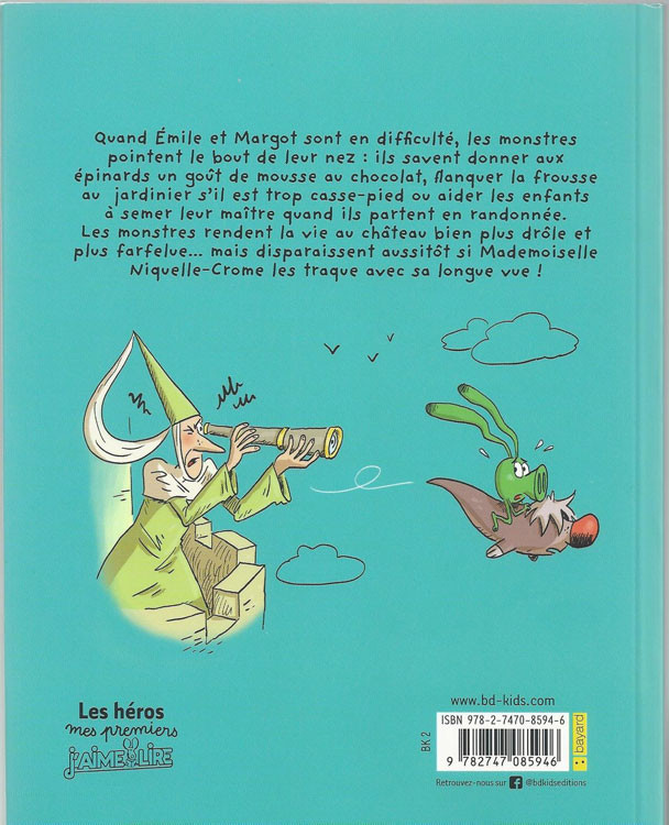 Résumé: Il est bien difficile d’être prince et princesse… Entre leurs parents, la gouvernante Mademoiselle Niquelle-Crome et l’instituteur Monsieur Peumieufaire, Emile et Margot ne s’amusent pas beaucoup. Alors, quand les monstres débarquent pour mettre la pagaille, les enfants sont ravis ! Entre la famille de Stre-mon qui fait tout à l’envers, le Monstre du goût qui donne aux épinards le goût de la mousse au chocolat ou les Chaussures de Marche-Toute-Seule qui aident pour les randonnée, les aventures ne s’arrêtent jamais. Pour notre plus grand plaisir ! Alors ouvrez bien vos yeux car (vous l’avez deviné)… Monstres en vue !