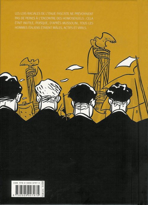 Chacun sait que dans l’Allemagne nazie, les homosexuels étaient déportés. En Italie, ce n’est pas parce qu’on n'en parle pas – ou si peu - que la question a pour autant été éludée par Mussolini. Si celui-ci s’est opposé à l’introduction d’une législation homophobe, c’est paradoxalement parce que selon lui, « les Italiens étaient trop virils pour être homosexuels » ! Alors ceux qui se laissaient aller à leur penchant honteux, il a préféré les mettre à l’écart, discrètement, loin des tribunaux, sur une île au sud du pays, croyant circonscrire le mal comme on cache la poussière sous le tapis… Ils n’étaient pas spécialement maltraités par leurs gardiens, mais les conditions de vie étaient rudimentaires, ils manquaient de tout et connaissaient souvent la faim… Malgré toute la sincérité de la démarche des auteurs (faire témoigner un des derniers survivants ayant séjourné dans ces centres), je ne peux pas dire que j’ai été réellement touché par l’histoire. Si je reconnais que ces personnages peuvent être attachants et que l’histoire d’amour entre Ninella et Mimi est magnifiée par un romanesque que n’aurait pas renié Jean Genet, je n’ai pas été ému outre-mesure, du moins pas autant que je l’aurais voulu. Est-ce dû à la retenue manifestée par les auteurs dans leur souci de ne pas trahir les propos du vieil homme et vis-à-vis de la responsabilité qui était la leur ? Est-ce dû au dessin un peu froid et aux visages peu expressifs ? Du côté de la narration, rien à redire, cela se lit plutôt bien... Reste l’intérêt historique d’un tel témoignage, grâce auquel on se rend compte que les gays italiens de cette époque avaient déjà une conscience claire de leur identité dans un contexte particulièrement hostile, où tout semblait se liguer contre eux, qu’il s’agisse du machisme ambiant, du catholicisme étouffant ou du fascisme réprimant…BDGest 2014 - Tous droits réservés