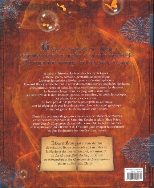 cinématographiques, Édouard Brasey a collecté tout le savoir des hommes sur les peuplades féériques, elfes, lutins, sirènes ou nains, les bêtes terrifiantes comme les dragons, les licornes, les griffons, les gargouilles, mais aussi les créatures de la nuit, les loups-garous, les vampires, les trolls, les cyclopes, les géants, les orques, les titans...