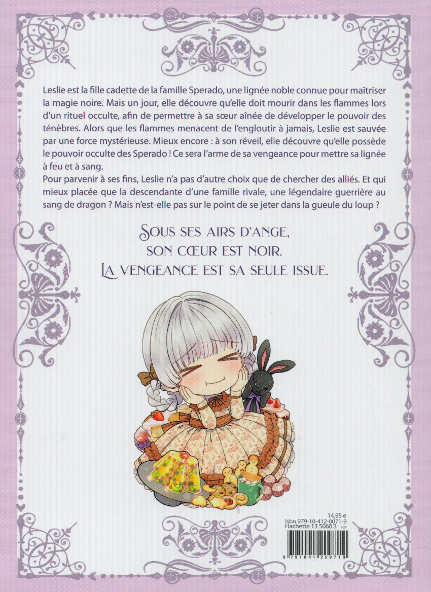 Résumé: Leslie est la fille cadette de la famille Sperado, une lignée noble connue pour maîtriser la magie noire. Mais un jour, elle découvre qu'elle doit mourir dans les flammes lors d'un rituel occulte, afin de permettre à sa soeur aînée de développer le pouvoir des ténèbres. Alors que les flammes menacent de l'engloutir à jamais, Leslie est sauvée par une force mystérieuse. Mieux encore : à son réveil, elle découvre qu'elle possède le pouvoir occulte des Sperado ! Ce sera l'arme de sa vengeance pour mettre sa lignée à feu et à sang. Pour parvenir à ses fins, Leslie n'a pas d'autre choix que de chercher des alliés. Et qui mieux placée que la descendante d'une famille rivale, une légendaire guerrière au sang de dragon ? Mais n'est-elle pas sur le point de se jeter dans la gueule du loup ?
