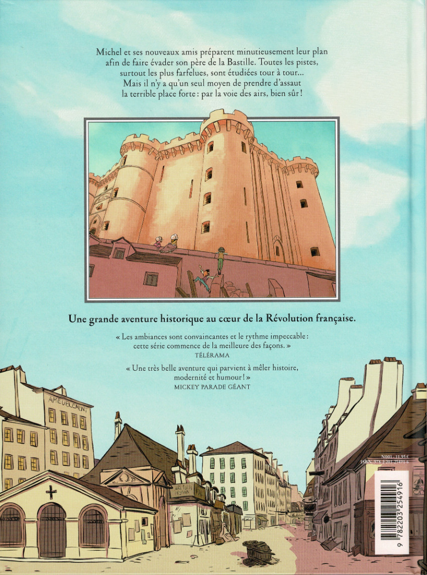 Résumé: Michel et ses nouveaux amis, depuis leur planque sur les toits de Paris, préparent minutieusement leur plan afin de faire évader le père du garçon de la Bastille, où il serait emprisonné depuis les récentes émeutes. Toutes les pistes, surtout les plus farfelues, sont étudiées puis rejetées tour à tour... Non, c'est certain, il n'y a qu'un seul moyen de prendre d'assaut la terrible place forte, et c'est la voie des airs !