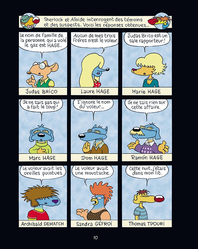 Résumé: Sherlock Latruffe est détective. Flanqué de son grand dadais d’assistant Albide, il mène des enquêtes, résout des énigmes, déchiffre des codes et crie « GIGAWATT » quant tout s’éclaire. Ceci dit, Sherlock apprécierait un peu d’aide… La tienne, notamment ! Alors observe bien les cases, écoute les alibis des suspects, note tous les détails, et tu parviendras à crier « GIGAWATT ! » avant Sherlock !