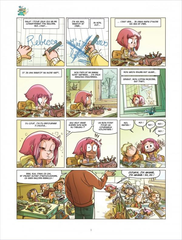 Résumé: Le rhume de Rebecca s'est envolé et avec lui, Ernest, son copain microbe. Rebecca voudrait tant qu'il revienne. Mais, à l'école, c'est un autre virus qui menace les enfants, un virus-zombie : la grippe! Ernest reviendra-t-il pour sauver Rebecca et ses copains de classe ?