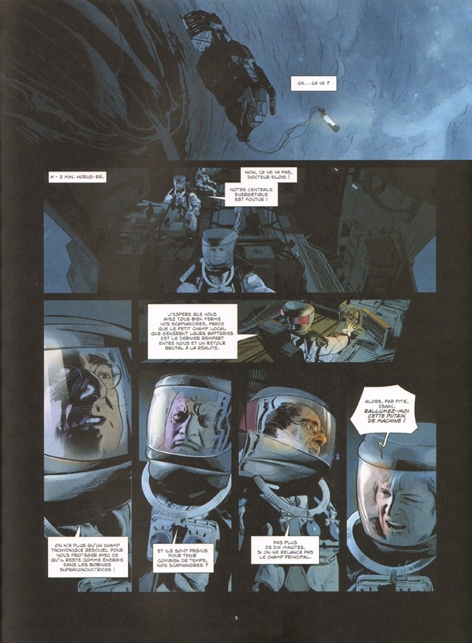 Malheureusement, le tome 2 confirme tout le mal que je pensais du 1er tome... J'ai plus l'impression de lire une série Z des années 50 qu'un album de BD d'aujourd'hui. Les auteurs utilisent un langage "préchi-précha", une sorte de salmigondis pseudo-scientifique, pour emballer une histoire qui ne mène à rien et manque cruellement de chair. Je ne retrouve pas là l'excellent travail de Bajram sur "Universal War" ; le dessin n'est pas en cause, il demeure de très bonne facture, mais le scénario... Dieu que c'est mauvais ! Alors qu'on devrait être touché par l'histoire de la mère qui veut reparler à son fils déclaré mort cliniquement, ce n'est pas le cas et on regarde simplement se débattent dans l'adversité ces adultes en principe remarquables, et qui ne sont finalement pas si admirables que cela. En fait, on suit des ados en vadrouille avec le bateau de papa ! Le ridicule l'emporte sur le (absence de) suspense. A fuir, car sans intérêt, malgré toute l'admiration que je porte aux auteurs.Le 20/11/2015 à 16:58:58