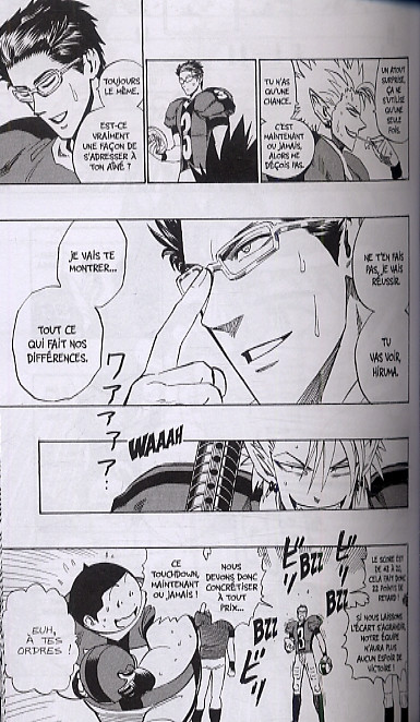 Résumé: Hiruma et Agon forment un Dragon Fly improbable ! Pour cette finale de la Coupe du monde, le Japon déploie toutes ses tactiques dans l'espoir d'ébranler les États-Unis ! Emporté par l'élan de ses camarades, Sena se mesure à nouveau à Panther ! Quelle sera l'issue de la rencontre ? Quel avenir pour nos héros ?