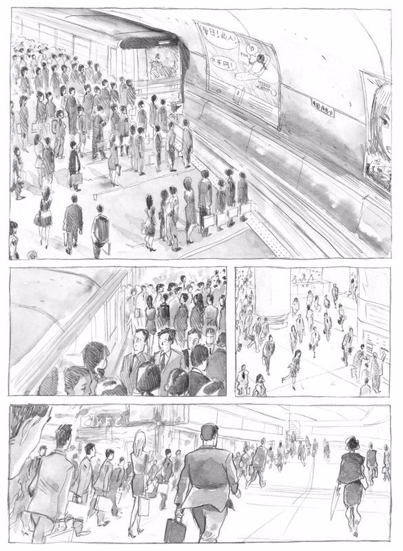 Malgré cela l’album est une réussite sur ces deux points. L’histoire nous invite dans l’intimité des personages et prend le temps nécessaire pour nous la décrire – c’est le grand avantage d’un récit long de 150 pages. A noter: une excellente utilisation de séquences muettes évite l’écueil de l’explication par le texte. En cela, le rythme rappelle certains films japonais où l’on montre plus que l’on explique – je vous renvoie à la séquence dans l’hôtel capsule. Etant si proche des personnages, on découvre par la même occasion les détails de la vie japonaise urbaine. Les auteurs montrent un souci du détail et d’authenticité impressionant – je parle ici par rapport à ma petite expérience du Japon. On sent qu’il y a du vécu derrière tout cela ;)