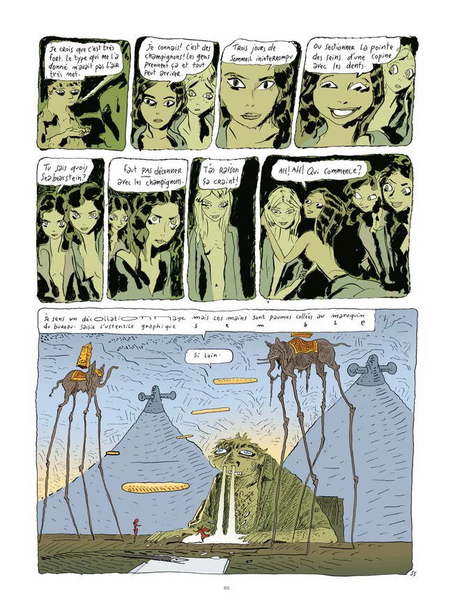 "Fin de la Parenthèse" commence par une belle idée stimulante, toute à l'honneur de la réflexion "d'honnête homme" engagée depuis longtemps par Joann Sfar sur la religion et ce qu'elle apporte ou retranche à l'humanité, une réflexion évidemment exacerbée par les événements terroristes de 2015 et 2016 : l'Art, dans ce qu'il a de plus ambitieux - soit offrir une vision alternative du monde - est le seul moyen de mettre fin à la dictature de Dieu et de ses prêtres. Le fait que Sfar ait récemment "connecté" avec la peinture de Dali, puissante opportunité de redessiner la réalité comme notre propre psyché, lui donne l'idée d'un huis clos "artistique" avec une poignée de jeunes femmes aussi squelettiques que dénudées - visiblement, Sfar craque pour le stéréotype du top modèle -, huis clos qui permettra à son alter ego de recréer certaines des oeuvres les plus célèbres de Dali, pendant que ce dernier est décryogenisé. Jusque là, tout va bien, sauf que l'absorption de puissants champignons hallucinogènes va faire basculer l'expérience dans le délire et la BD dans un long tunnel de dessins certes sensuels mais quand même répétitifs. Le pire est quand même atteint à la fin quand Sfar (à travers son personnage, mais quand même...) semble s'être totalement désintéressé de son superbe postulat de départ et referme la parenthèse sans plus y prêter la moindre attention. On hésite alors entre déception et irritation : lâcheté ou pur foutage de gueule ? Ou bien y aura-t-il une suite ?BDGest 2014 - Tous droits réservés