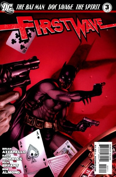 Résumé: John Sunlight swims. The graveyard fight is broken up by Dolan's cops, and The Spirit catches an autogyro. Batman trashes a casino, Bruce Wayne chats with Colossi, then steepleclimbs as Batman, only to be shot at and pounded, then nearly decapitated by a Right Red Hand cultist. Doc is in jail until a Blackhawk jet blasts him free. The Blackhawks order Ebony to dig up the missing coffin. The Avenger kills thugs and rescues Batman, who chooses to visit Hildago, where Colossi's robot has Johnny.