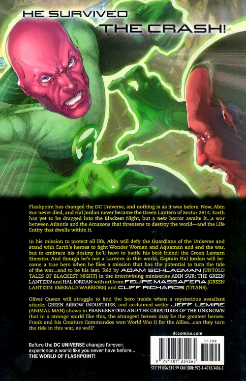 Info édition : Noté "First printing" en page 6 Contient : Flashpoint : Hal Jordan (2011) #1-3, Flashpoint : Abin Sur (2011) #1- 3,Flashpoint : Frankenstein and the creatures of the Unknown (2011) #1-3 et Flashpoint : Green Arrow Industries (2011) #1.