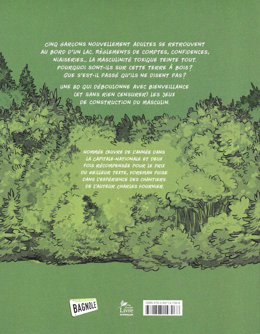 Résumé: Cinq garçons nouvellement adultes se retrouvent au bord d'un lac. Règlements de comptes, confidences, niaiseries… la masculinité toxique teinte tout. Pourquoi sont-ils sur cette terre à bois ? Que s'est-il passé qu'ils ne disent pas ?