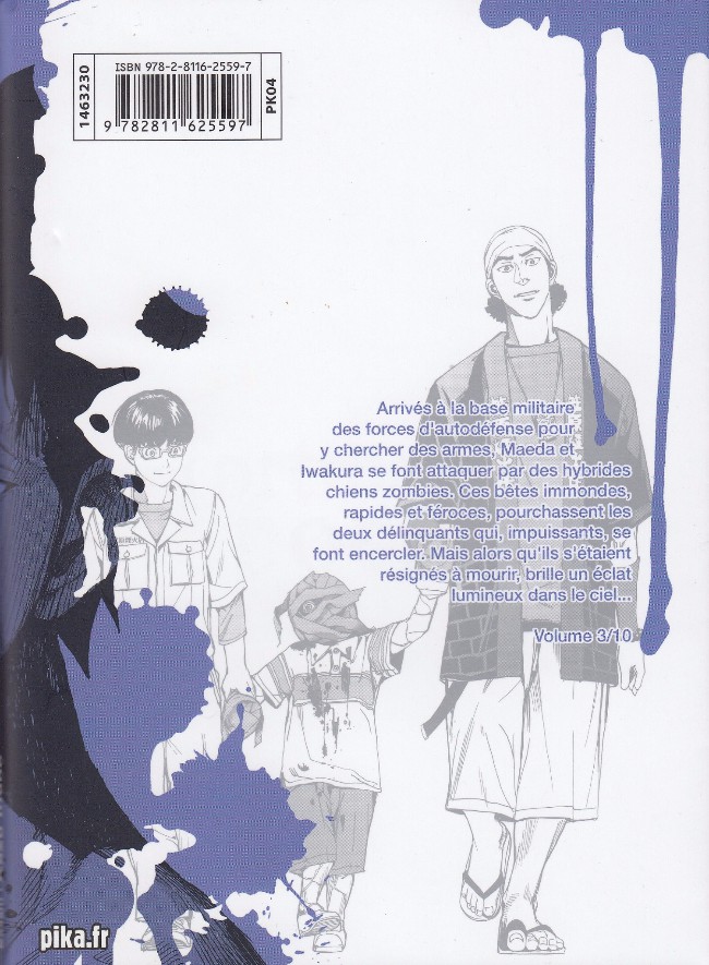 Résumé: Arrivés à la base militaire des forces d'autodéfense pour y chercher des armes, Maeda et Iwakura se font attaquer par de hideux hybrides chiens zombies. Ces bêtes immondes, rapides et féroces, les pourchassent jusqu'à les encercler. Mais alors qu'ils s'étaient résignés à mourir, brille un éclat lumineux dans le ciel... Déterminés à survivre, les deux délinquants élaborent un plan désespéré pour s'échapper. Ils ne se doutent pas que les pires retrouvailles possibles les attendent !
