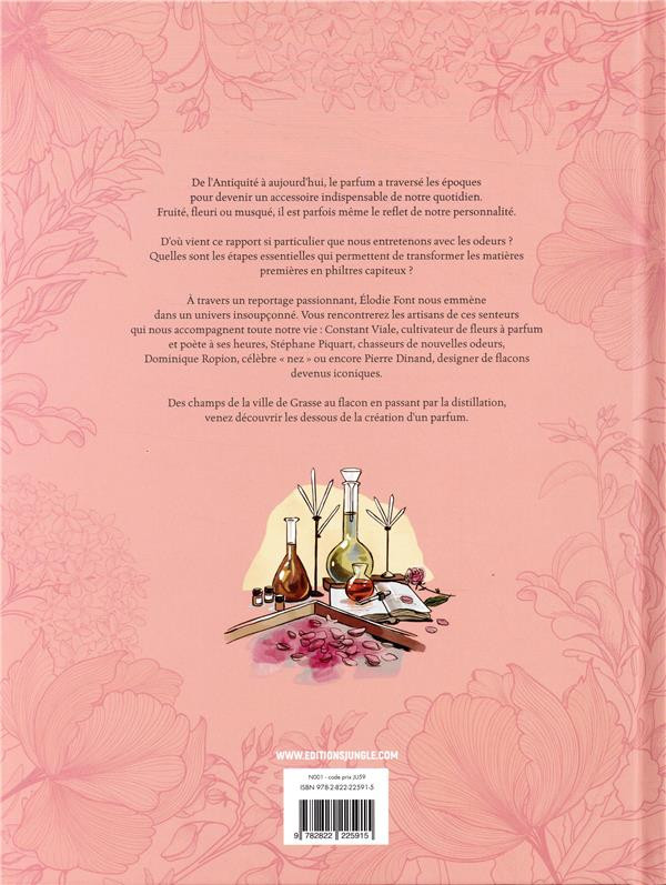 C'est la première bd véritable sur le parfum. Il faut savoir que le parfum a traversé les époques de l'Antiquité à la célèbre Cléopâtre jusqu'à nos jours où Julia Roberts et Charlize Theron font les beaux jours de certaines marques. L'homme le plus riche du monde est français et dirige l'industrie du luxe. Pour ma part, j'aime beaucoup le parfum au point d'en avoir créé un à l'aide d'une parfumeuse afin qu'il soit unique. Bon à savoir : la peau des hommes capture mieux les odeurs que celle d'une femme ce qui a des conséquences sur la fabrication (celui des femmes sera plus concentré en essence). A Paris, on trouve des boutiques qui vendent des parfums assez rares : c'est la parfumerie dite de niche. Bref, il faut avoir du nez. Le récit se concentre non seulement sur les origines mais également sur le processus de création avec les différentes fleurs ainsi que la distillation. On parlera également de la capitale mondiale du parfum à savoir Grasse mais ce n'est plus qu'une vitrine. Enfin, il y aura la chimie également avec les molécules adéquates. On relèvera également qu'on ne touche plus aux animaux (ex : ambre gris du cachalot ou takin du Tibet) pour fabriquer un parfum d'où une reproduction en synthèse. Bref, on apprendra des choses très intéressantes sur le monde du parfum. Par ailleurs, c'est un album très joliment dessiné, avec de belles couleurs qui font envie. Senteur et odorat n'auront plus de secret pour vous.BDGest 2014 - Tous droits réservés