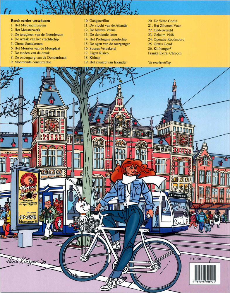 Résumé: Het Amsterdamse filmmuseum Skye ontvangt een fragment uit de onbekende, futuristische film Amsterdam 1975 uit de jaren 1930. In die film staat Amsterdam vol met enorme, vijftig verdiepingen tellende gebouwen, suizen er vliegende auto's door de lucht en kon Henk Kuipers zich amuseren met een Metropolis-achtige weergave van een retro-futuristische stad. Franka krijgt de opdracht op onderzoek te trekken. Daarmee dwarsboomt ze onbedoeld iemands plannen, die daarom Franka wil uitschakelen. Er is dan ook vijftig miljoen euro aan goud mee gemoeid. Op tocht in Amsterdam-Noord wordt er al meteen een moordaanslag op Franka gepleegd.