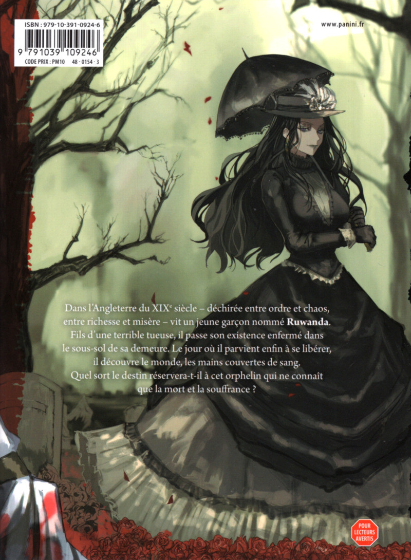 Résumé: Angleterre, XIXe siècle. Ruwanda est un jeune garçon né dans un monde déchiré entre l'ordre et le chaos, la richesse et la misère. Libéré de l'emprise de sa mère, il sort des ténèbres, les mains couvertes du sang de nombreux innocents.Quel avenir la vie réserve-t-elle à un orphelin qui ne connaît que la mort et la souffrance ? La solitude et la noirceur ? Mosae Nohara, le dessinateur du manga BEM, exprime tout son talent pour le genre horrifique dans From the Red Fog, un manga aussi angoissant que captivant.Il nous transporte dans l'Angleterre du XIXe siècle au travers du jeune Ruwanda. Le mangaka met en scène une relation toxique entre une mère et son fils. Tiraillé entre l'amour et la haine, ce garçon se transforme peu à peu en une figure inquiétante, et même terrifiante. Ignorant tout du monde qui l'entoure, cet enfant, n'ayant connu que l'enfermement, commet des actes atroces quand il arrive dans le monde des vivants. Sans doute parce qu'il ne connaît que la mort, la noirceur et la solitude.