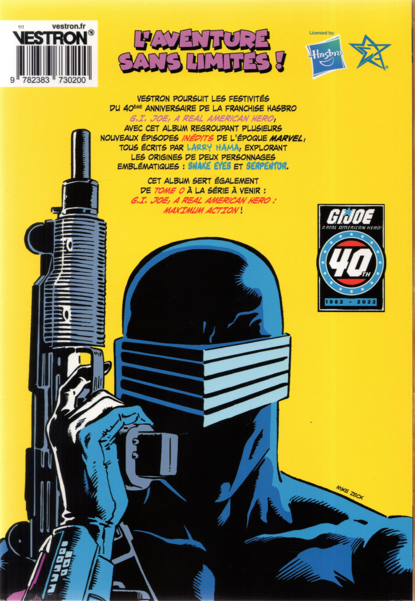 Résumé: Vestron poursuit les festivités du 40ème anniversaire de la franchise Hasbro G.I. Joe, A Real American Hero! avec cet album regroupant plusieurs épisodes de l’époque Marvel, tous écrits par Larry Hama, explorant les origines de deux personnages emblématiques : SNAKE EYES et SERPENTOR !