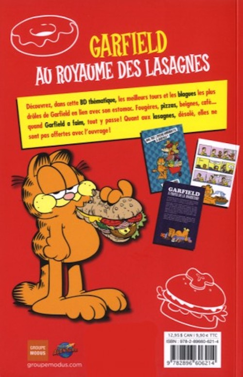 Résumé: Découvrez, dans cette BD thématique, les meilleurs tours et les blagues les plus drôles de Garfield en lien avec son estomac. Fougères, pizzas, beignes, café... quand Garfield a faim, tout y passe ! Quant aux lasagnes, désolé, elles ne sont pas offertes avec l'ouvrage !