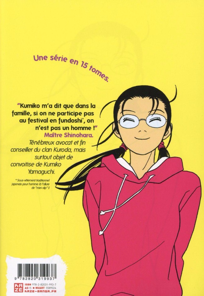 "Kumiko m'a dit que dans la famille, si on ne participe pas au festival en fundoshi*, on n'est pas un homme !" Maître Shinohara, ténébreux avocat et fin conseiller du clan Kuroda, mais surtout objet de convoitise de Kumiko Yamaguchi.