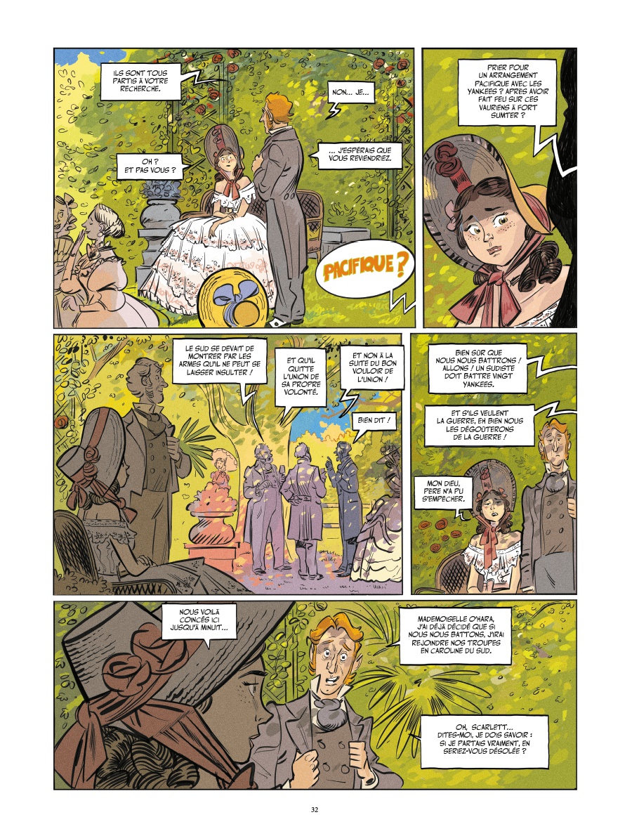 il faut que je l'avoue tout de suite, "Gone with the wind" est un des rares titres voire le seul titre qui m''émeut depuis des années. J'ai d'abord découvert , en tant que fan du cinéma américain des années 40,, le film de Selznick (pour faire court) avec Vivien Leigh et Clark Gable, que je revois au moins une fois par par an. Ce film fut pour moi Le Film , s'il n'en fallait qu'un, que l'on devrait retenir du XX ème siècle. Je possède d'ailleurs de nombreux ouvrages sur ce chef-oeuvre cinématographique, comme les "mémos" de Selznick, ou encore "les coulisses du films" qui reprend notamment un grand nombre de stoty-bord du fim, pas si éloigné de cet album, ill faut le souligner, et "la fabuleuse aventure d'un film" de Judy Cameron et Paul Christman, et d'autres ouvrages assez nombreux... sans oublier cette formidable adaptation cinématographique que je revois en VO-sans tout titre- tant je connais les dialogues par coeur (d'ailleurs "Gone with the wind "est avec "Casablanca" est un des rares films que je peux suivre en VO, tant je suis fan de ces films) En l'espèce, Pierre Alary s'est plutôt attaché à retranscrire le roman de Margaret Mitchell que de nous présenter une adaptation du film de Fleming (et de Georges Cukor, non crédité à la réalisation) Alors pour cet album, je suis resté scotché par cet album. D'une part, il faut souligner la qualité des couleurs employées, qui sont formidables. D'autre part, le dessin de Pierre Alary, que j'avais juste découvert avec "Belladone", a gagné en maturité et en apaisement, Scarlett étant ici l'héroïne, telle que Margaret Mitchell l'avait imaginé. L'auteur, ayant en plus réussi à se détacher du film mythique, à mes yeux, avec notamment la présence de Wade, l'enfant d'un premier mariage de Scarlett ( volontairement occulté dans l'adaptation cinématographique) et de Phiiip, premier et unique amour de Mme O'Hara , complètement oublié dans le film. Pierre Alary a réussi sur cet album à faire une chose surprenante pour quelqu'un qui a pour ce roman une appétence particulière (je possède les deux adaptations françaises de ce roman , celle de Gallimard (de 1938) et celle de Gallmeister (2020), traduction plus fluide et réaliste à mon avis)..En effet, outre son adaptation très réussie du roman, Pierre Alary nous enchante en nous présentant graphiquement les moments forts des aventures de Scarlett, à travers des hors titres consacrés au siège d' Atlanta et à la gare de triage d'Atlanta, avec son flot de blessés, comme Fleming l'avait réalisé dans le film, dans des scènes cruciales. J'ai oublié de souligner la qualité éditoriale de la maison d'édition "rue de Sèvres", qui avec un dos toilé, et un prix plus qu'abordable, nous offre un album que tout lecteur doit lire. Je n'ai pas encore parlé du dessin, des personnages (dont Pierre Alary arrive à faire vieillir intelligemment , comme Ashley Wilkes) mais qu'importe, je suis resté sous le charme de cette adaptation que j'ai dévoré. Bravo à l'auteur.Le 19/06/2023 à 15:12:21