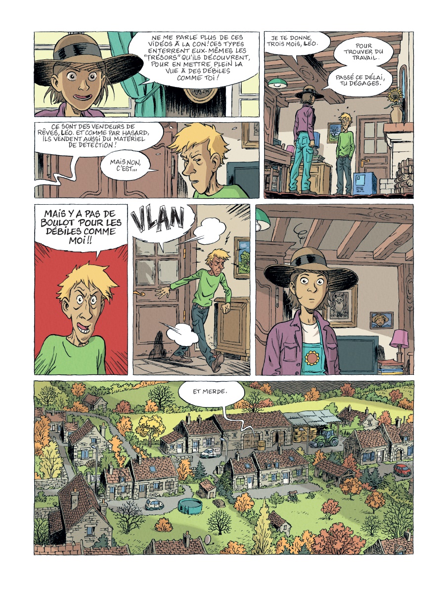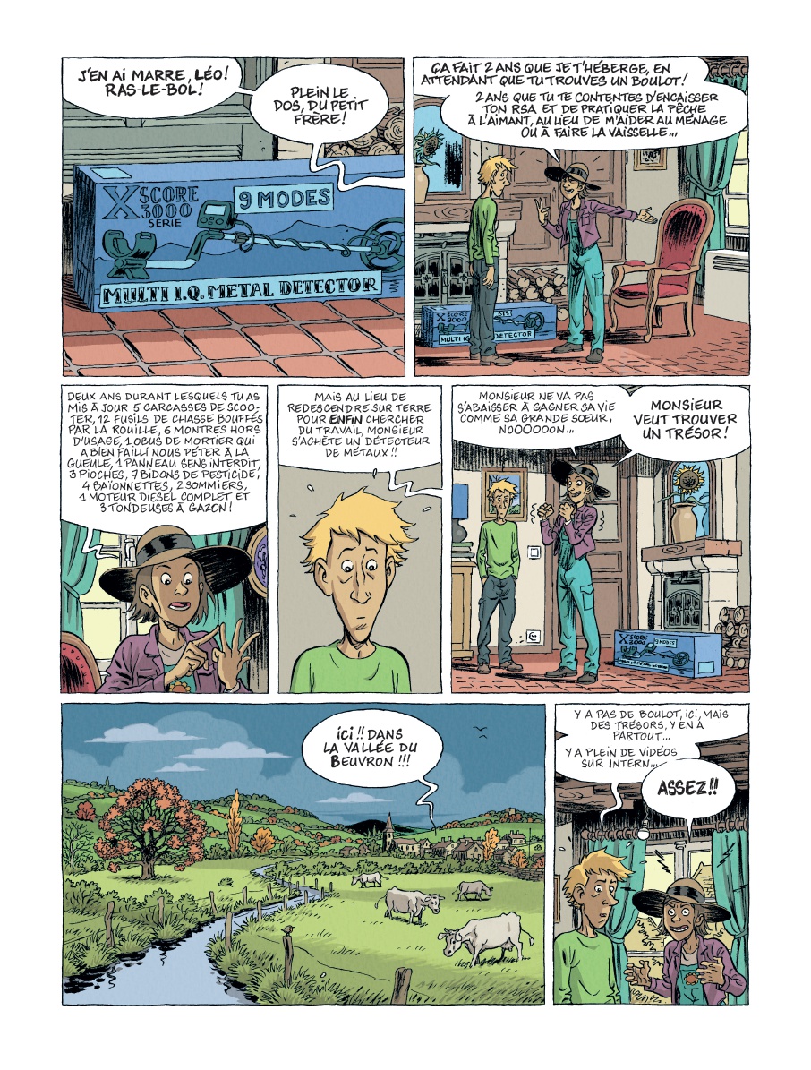 Résumé: Dans la région, les trésors, ça ne court pas les rues. Mais les boulots non plus. Léo n'a ni l'un ni l'autre. Pourtant, ce n'est pas faute de chercher. Le problème, c'est la méthode. La pêche à l'aimant n'a jamais été la meilleure façon de trouver un emploi. En attendant, il vit chez sa soeur, et se contente du minimum, surtout quand il s'agit de faire la vaisselle. Mais quand Hélène, à bout de nerfs, lui donne trois mois pour trouver un travail, Léo décide de passer aux choses sérieuses. Il s'achète un détecteur de métaux... Sans se douter qu'il s'aventure sur un terrain de chasse.