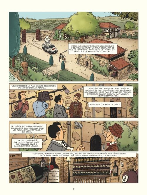 ean Poitou possède la plus belle collection de vins au monde. Son fleuron est un Château Lafite de 1787 ayant appartenu à Thomas Jefferson. C’est l’œuvre d’une vie, une passion et une obsession. À grands renforts de médias, il s’insurge régulièrement contre ceux qu’il estime dépourvus d’un réel amour pour la liqueur de Bacchus et seulement animés d’une soif spéculative. Antoine et Julien sont deux chroniqueurs de La Feuille de vigne, périodique consacré à l’actualité de l’univers de la dive bouteille. L’un est chétif, naïf et prompt à accepter toute invitation à une dégustation ; l’autre est un sceptique, bougon et lucide, qui sait lire entre les lignes et les indices. Les deux sont irrévérencieux, irresponsables et désinvoltes. Le jour où ils se rendent à la propriété de Jean Poitou, une explosion se produit. Les gendarmes ne réagissent pas, un fuyard n’est pas poursuivi. Les choses ne sont peut-être pas aussi simples qu’elles en ont l’air.