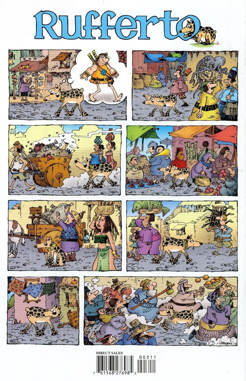 As the Year of Groo bumbles on, the world’s stupidest barbarian and his dog wander into those two sinister witches, Arba and Dakarba . . . who have a scheme to conjure up a giant duplicate of Groo! That means more Groo for your buck!
